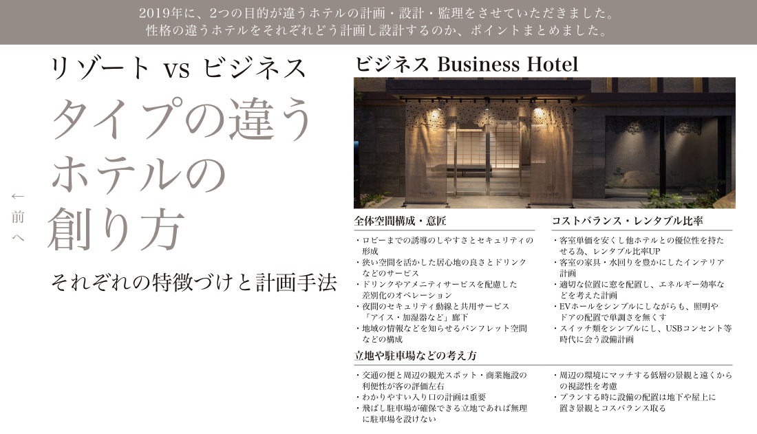 ホテル設計・アトリウム・ロビーやパブリックエリアの設計、リゾート施設のマスタープランは海外からの依頼もあります。